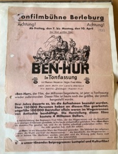 Im Lichtspielhaus Berleburg wurde mit dem Monumentalfilm Ben-Hur eines der großen Kinoereignisse seiner Zeit gezeigt. Mit Tausenden Statisten und aufwendigen Szenen stand der Film sinnbildlich für die Blütezeit des klassischen Kinos – ein Stück Filmgeschichte mitten in der Region.