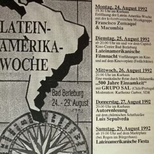 Das Open-Air-Kino lockte knapp 200 Besucher/-innen auf den Kino-Center-Vorplatz. Unter freiem Himmel genossen die Besucher/-innen zwei Dokumentarfilme über Latein-Amerika und ließen sich dabei südamerikanischen Eintopf schmecken.
